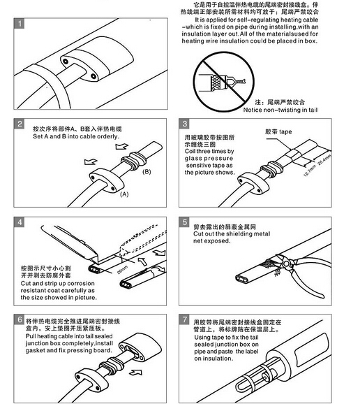 防爆终端接线盒又称终端封头,用于电热带的末端,使电热带尾端与外界隔绝。防爆标志:“EⅡT4”。适合全天候条件和石油、化工等工厂一区、二区爆炸性气体混合物T3组场所使用。电麻豆少妇高清无码专区带尾端严禁绞合,需要使用尾端接线盒连接,并作密封处理,以下通过接线图的说明,教您电麻豆少妇高清无码专区带的尾端接线方法,起到更好的密封作用,防止电麻豆少妇高清无码专区带受潮或进水而造成短路。